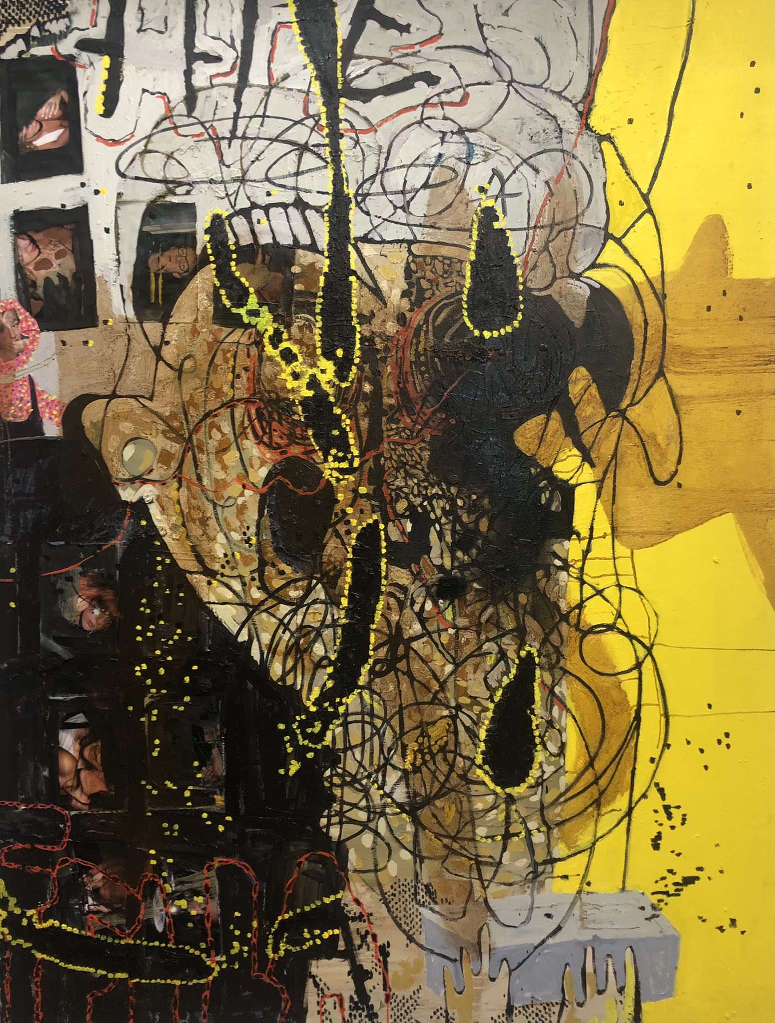 oil on canvas with collage. 140 x 200 in.