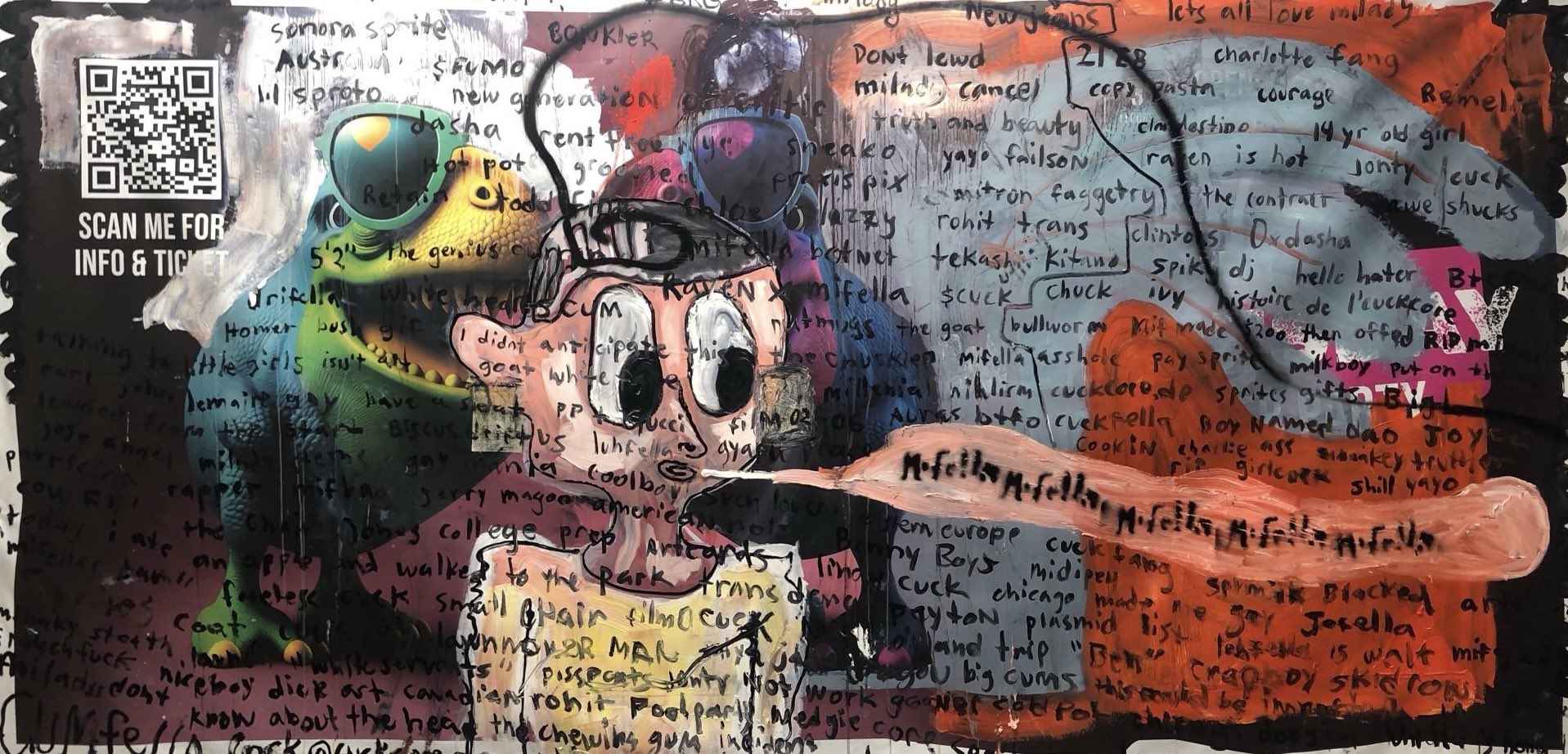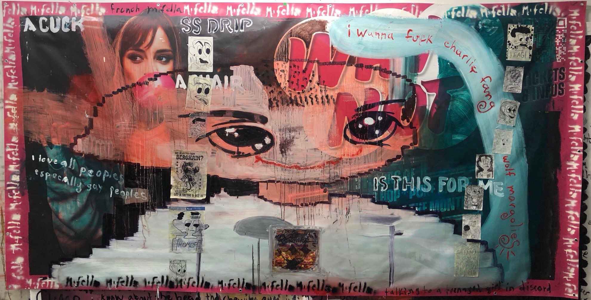 oil & collage on vinyl banner. 150 x 400cm.
